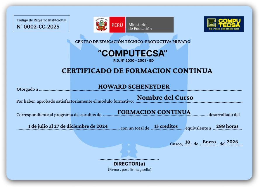 Al finalizar los módulos, recibirás una certificación oficial que acredita tu capacidad técnica para diseñar, desplegar y liderar ecosistemas de automatización de alto nivel: